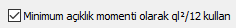 Minimum açıklık momenti olarak ql2/12 kullan ![]() Bu seçenek işaretlenmesi durumunda sürekli temellerde açıklık momenti en az açıklık= q*l*l/12'den bulana moment kadar kabul edilir. Donatı dizaynı bu momente göre yapılır. Hesaptan bulunan açıklık momenti q*l*l /12'den büyükse hesaptan bulunan açıklık momenti donatı dizaynında kullanılır. l = Sürekli temel temiz açıklığı |
