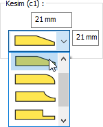 Kesim (c2) ![]() Levhaların sahada kolay montajı için şev kullanılmasına, şev tipine ve geometrik özellikleri değer girilerek belirlenir. |