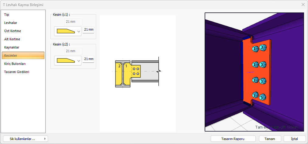 Çelik menüsünden T Levhalı Kayma Birleşimi satırını tıklayın.