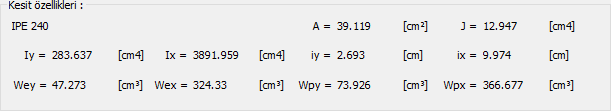 Kesit özellikleri ![]() Kesitin isminin ve geometrik özelliklerinin yer aldığı kısımdır. |