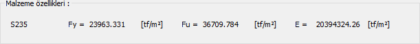 Malzeme özellikleri ![]() Kesitte kullanılan çelik malzemesine ait özellikler listelenir. |