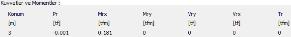 Kuvvetler ve momentler ![]() Elemanda oluşan, seçilen yük kombinasyonuna ait, iç kuvvetler bu kısımda gösterilir. |
