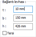 Bağlantı levhası ![]() Bağlantı levhası değerler girilerek belirlenir. Girilecek değerler şematik çizimde gösterilmektedir. |