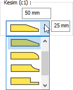 Kesimler (c2) ![]() Levhaların sahada kolay montajı için şev kullanılmasına, şev tipine ve geometrik özellikleri değer girilerek belirlenir. |