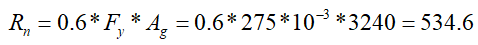 209.62 kN | 534.6 kN | 0.392 | √ |
