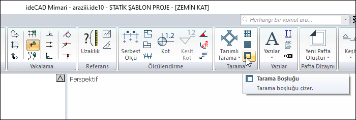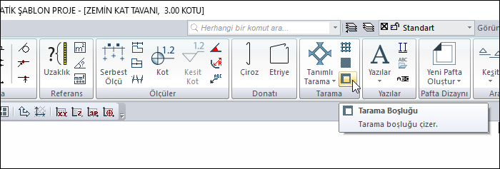 Ribbon menü Çizimler sekmesi Tarama başlığı altından ulaşabilirsiniz.