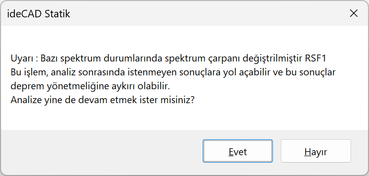Spektrum çarpanı değeri 1’den küçük girildiğinde uyarı verilir.