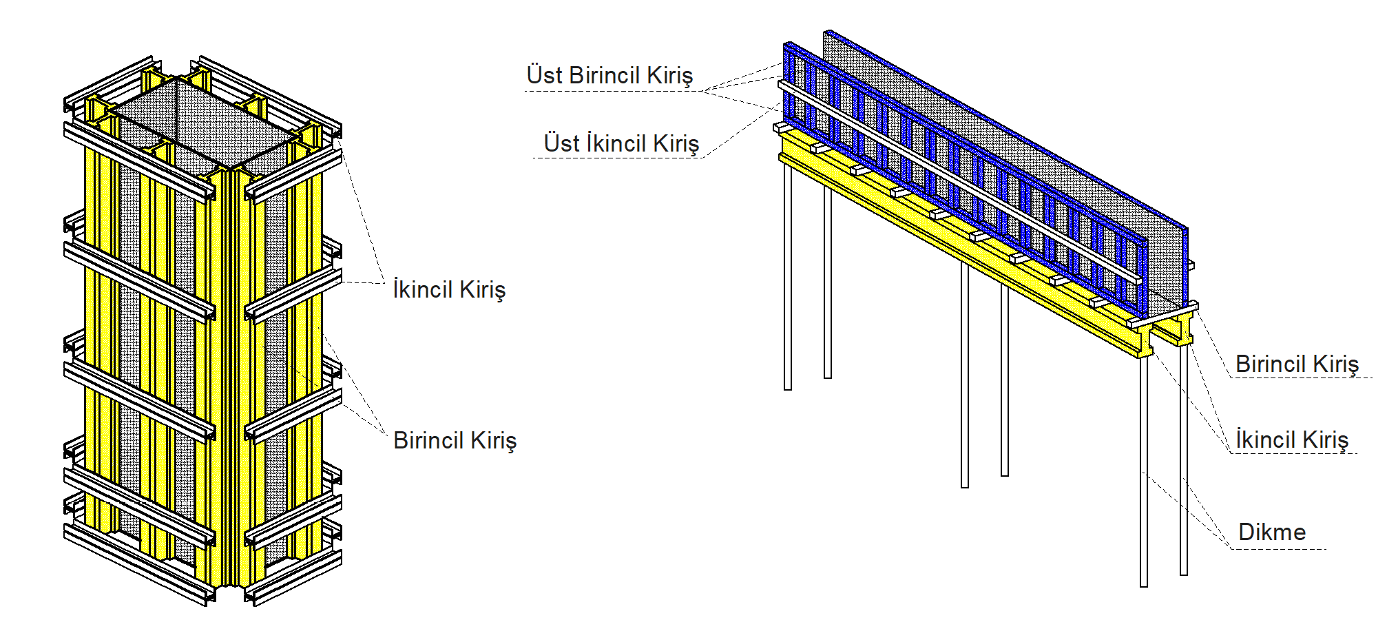 Kolon veya perde duvar kalıplarında 1.2.2 ‘ye göre hesaplanan rüzgar yüklerinin taşınması için en az bir seviyede payanda kullanılmalıdır.