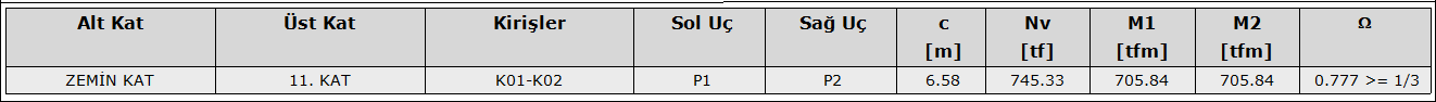 Bu kontrole göre çekirdek perdemiz boşluklu perde olarak değerlendirilmektedir. Ancak daha öncede belirtildiği gibi X doğrultusunda boşluklu ve boşluksuz perdelerin bir arada çalışmasından dolayı güvenli bölgede kalmak adına R ve D seçiminde boşluksuz perdeye uygun düzenleme yapılmıştır.