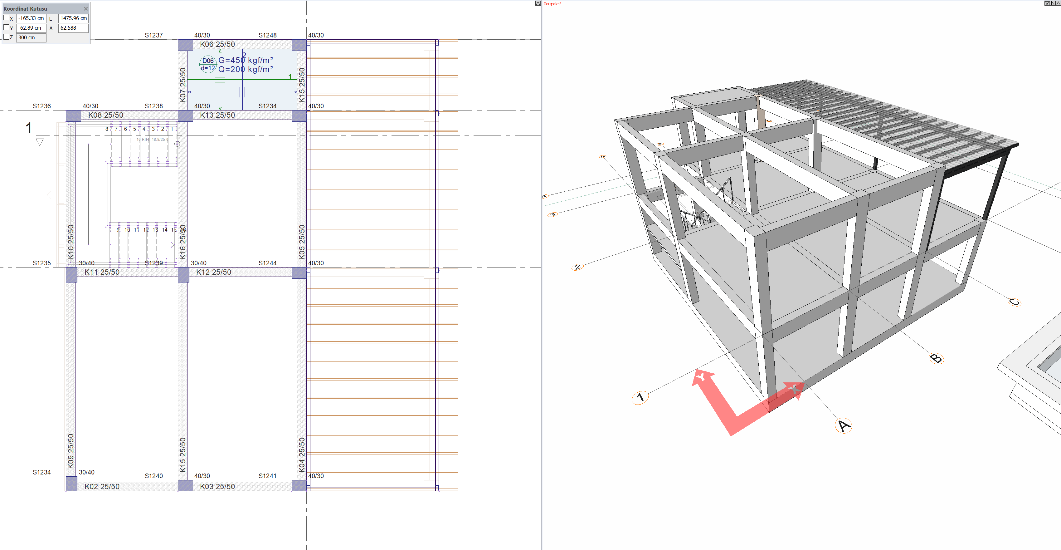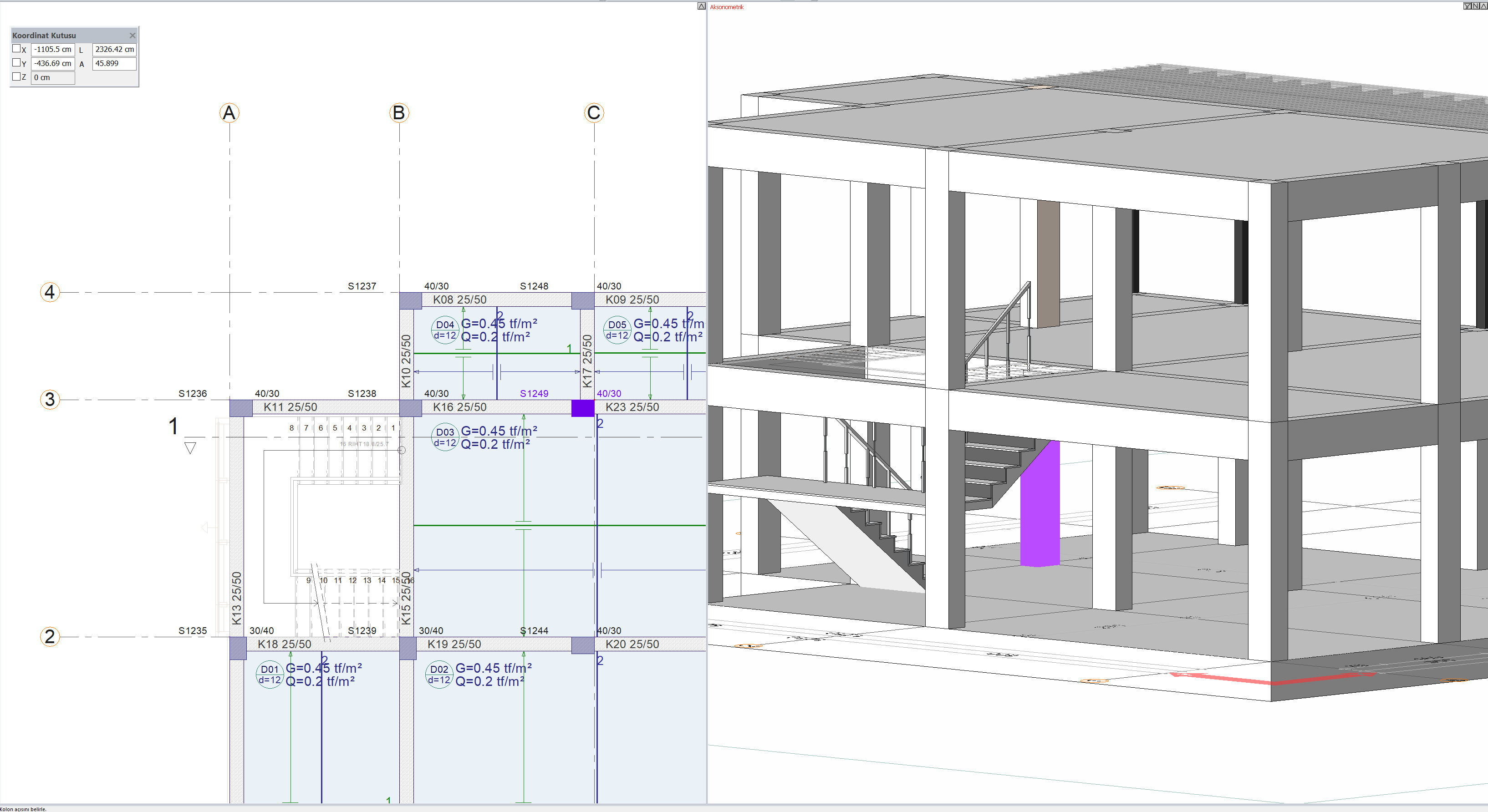 Analiz ayarları yapılan yapı bilgi modelinin taşıyıcı sistemi revize edilerek, uygun hale getirilir.