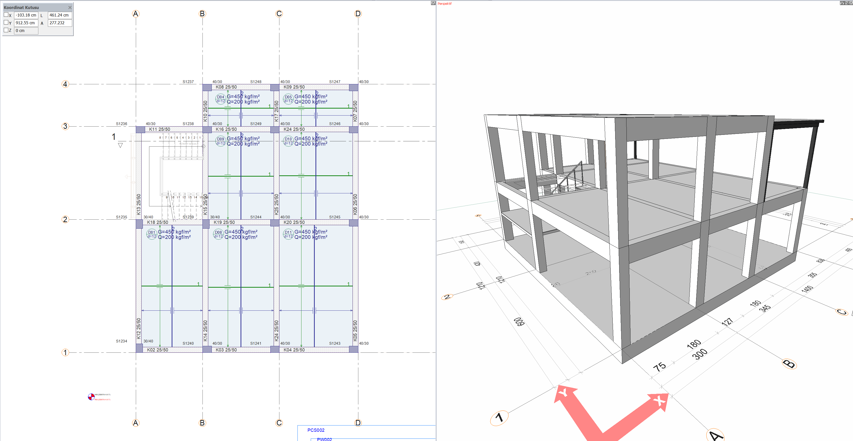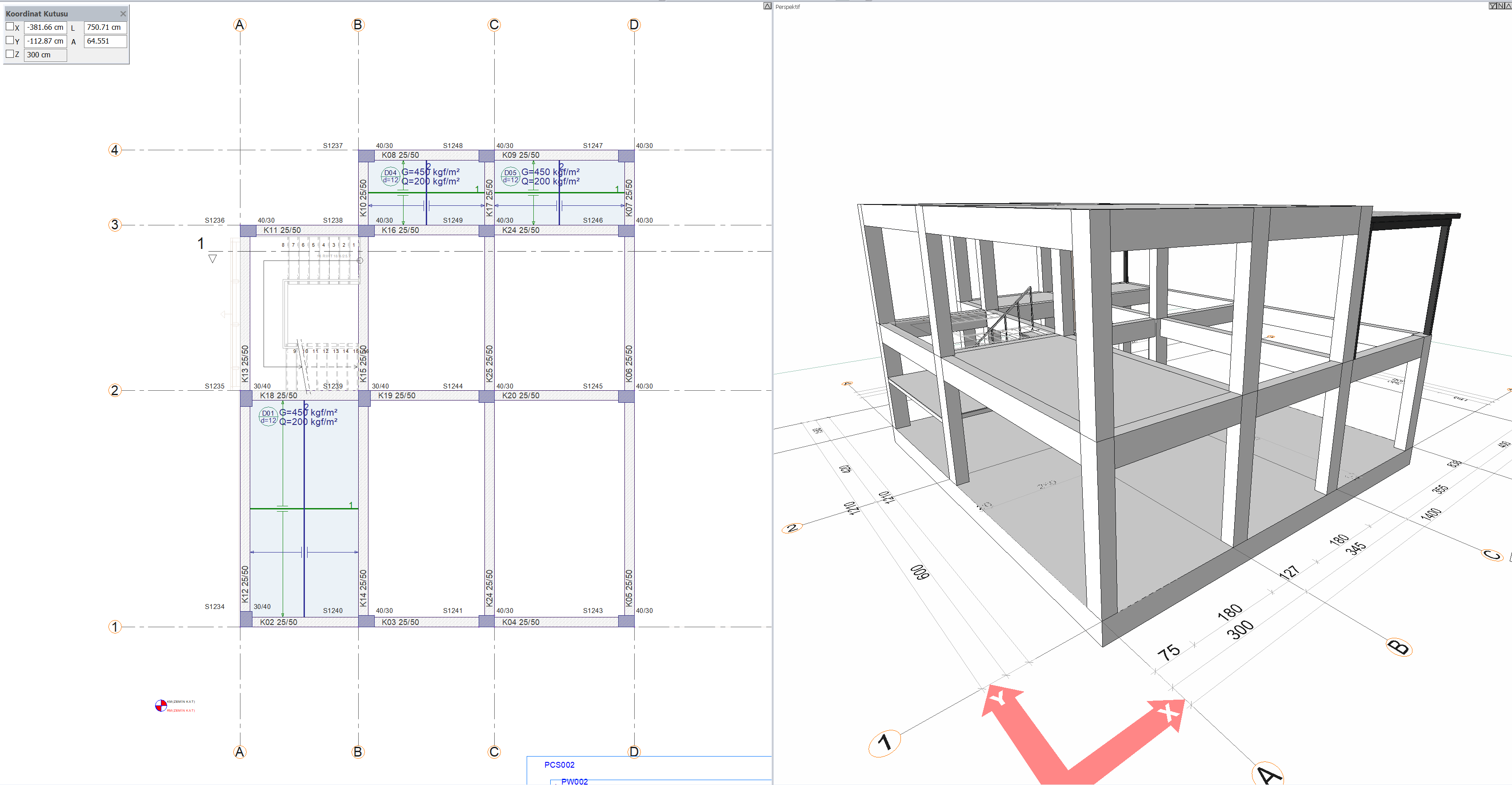 ideCAD Mimari ile hazırlanmış proje ideCAD Statik ile açılmıştır. Projeyi indirip taşıyıcı sisteme müdahale edebilirsiniz. |