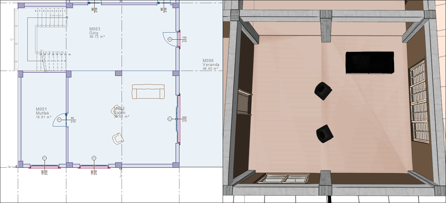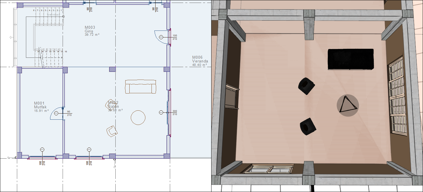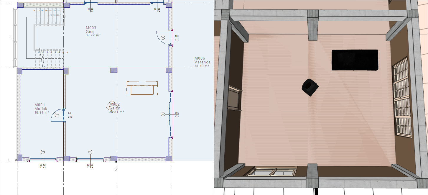 Bu bölümde yapı bilgi modellemesi kapsamında, mimari tasarımda salona tefrişlerini yerleştirin.