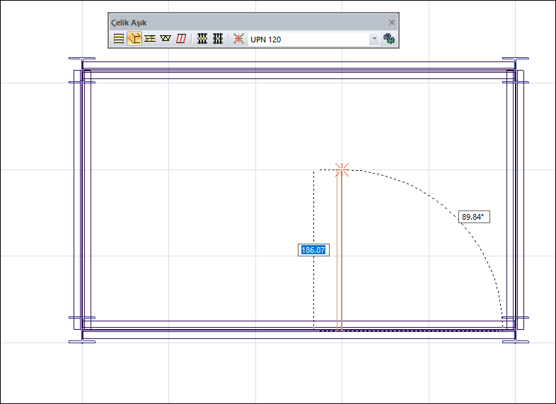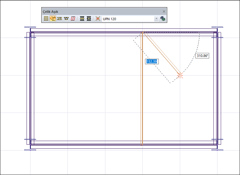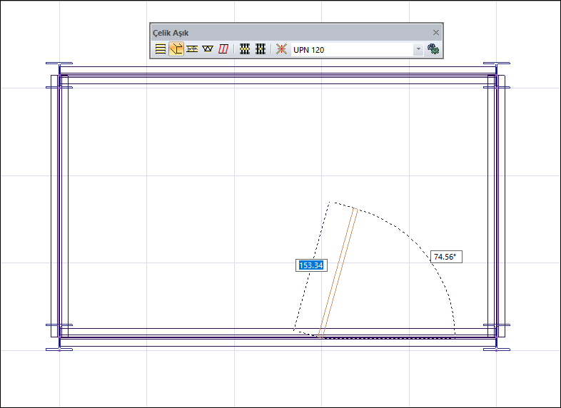 Tek aşık komutu ile iki kiriş arasına tek parça aşık çizilir.