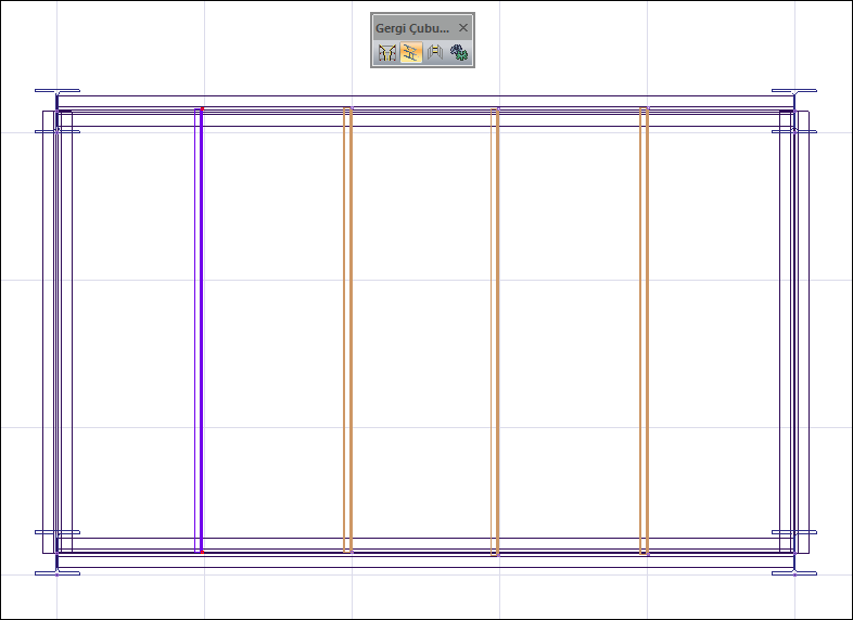 Tek Aşıkta Gergi Çubuğu komutu ile tek aşıklar arasına gergi çubuğu tanımlanır.