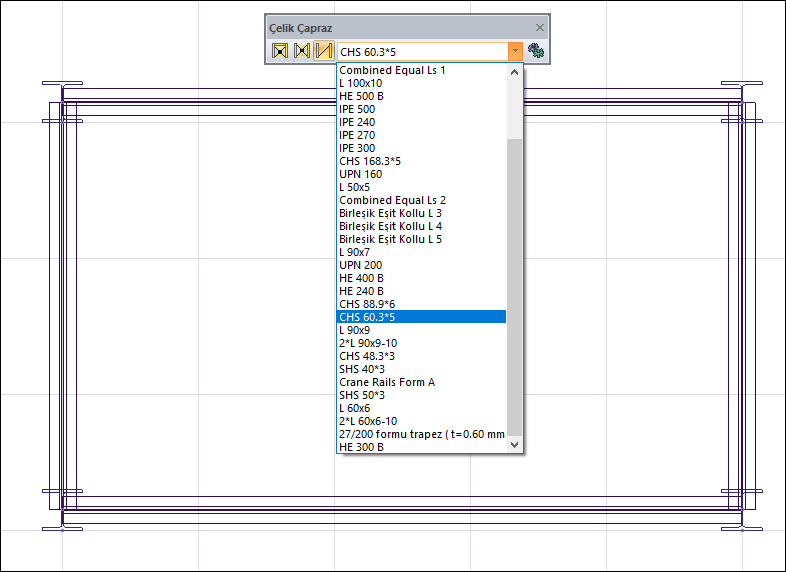 Ribbon menüden Tek Çelik Çapraz ikonuna tıklayın.