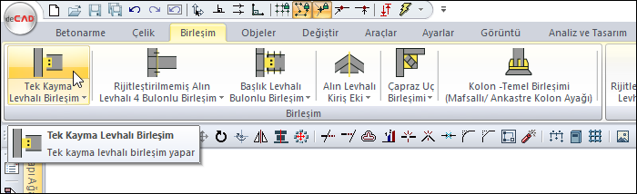 Çelik menüsünden Tek Kayma Levhalı Birleşim satırını tıklayın.
