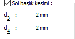 Sol başlık kesimi ![]() Seçenek işaretlenirse girilen değerlere göre sol başlık kesimi yapılır. Girilecek değerler şematik çizimde gösterilmektedir. |