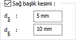 Sağ başlık kesimi ![]() Seçenek işaretlenirse girilen değerlere göre sağ başlık kesimi yapılır. Girilecek değerler şematik çizimde gösterilmektedir. |