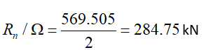 93.805 kN | 284.75 kN | 0.329 | √ |