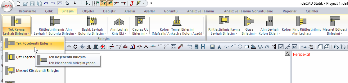 Çelik menüsünden Tek Köşebentli Birleşim satırını tıklayın.