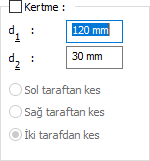 Kertme ![]() Seçenek işaretlenirse girilen değerlere göre kertme yapılır. Girilecek değerler şematik çizimde gösterilmektedir. |