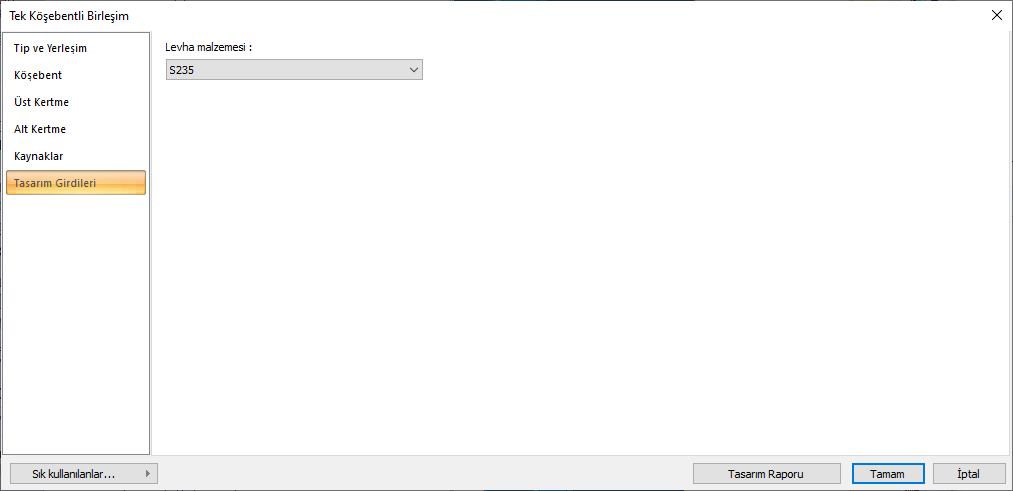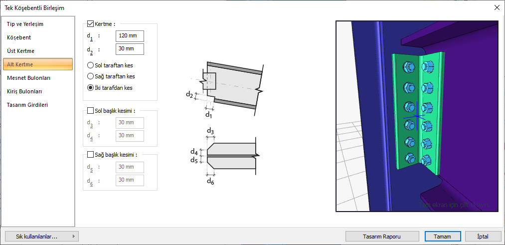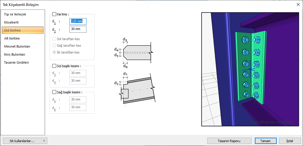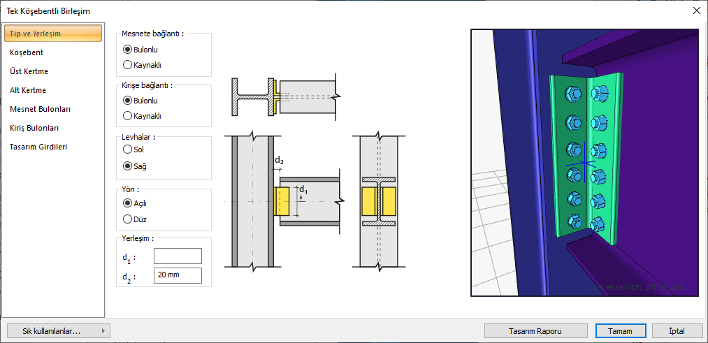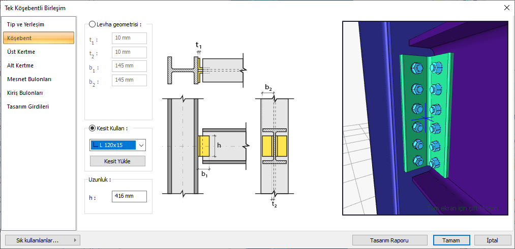 Tek Köşebentli Birleşim Ayarları Diyaloğu