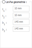 Levha geometrisi ![]() Seçenek işaretlenirse köşebent değerler girilerek belirlenir. Girilecek değerler şematik çizimde gösterilmektedir. |