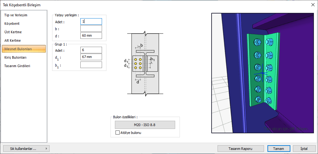 Mesnete bağlantı ![]() Mesnet bağlantısı için bulonlu ya da kaynaklı bağlantı tiplerinden biri seçilir. |
