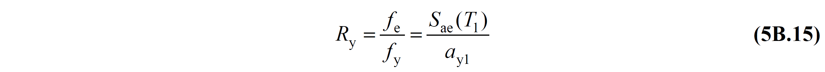 Bu bağıntıda fe ve Sae(T1) elastik dayanım talebi ’ni ve ona karşı gelen elastik spektral ivme ’yi, fy ve ay1 ise akma dayanımı ’nı ve ona karşı gelen akma sözde-ivmesi ’ni temsil etmektedir (Şekil 5B.4).