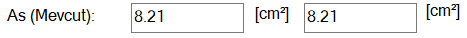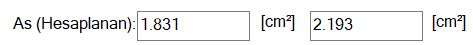 As (Mevcut) ![]() 1 metre genişlik için tekil temelin yatay ve düşey doğrultusunda 1 metredeki mevcut donatı alanlarıdır. |