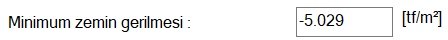 Minimum zemin gerilmesi ![]() Bütün yüklemelerden oluşan minimum zemin gerilmesidir. |