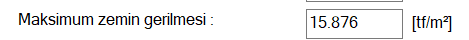 Maksimum zemin gerilmesi ![]() Bütün yüklemelerden oluşan maksimum zemin gerilmesidir. |