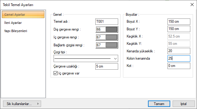 Katı ve adı verilen tekil temellerinin kalınlığını 25 cm’den fazla veriniz.