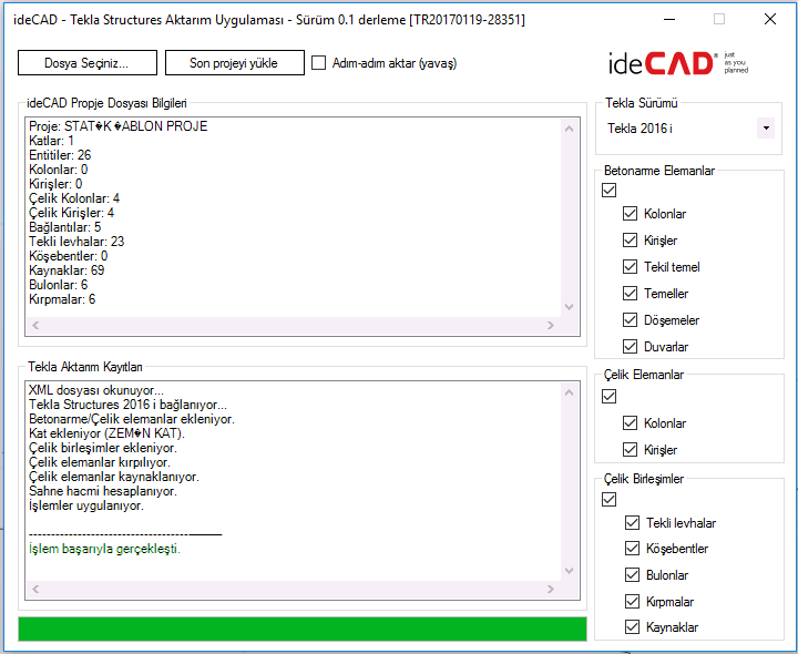Tekla sürümü ![]() Aktarma işleminin hangi tekla sürümü için yapılacağı seçilir. |