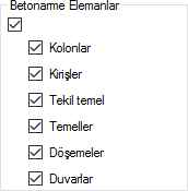Betonarme elemanlar ![]() Aktarılacak betonarme elemanlar seçilir. |