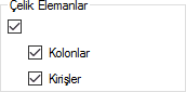 Çelik elemanlar ![]() Aktarılacak çelik elemanlar seçilir. |