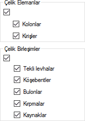 Çelik birleşimler ![]() Aktarılacak çelik birleşimler seçilir. |