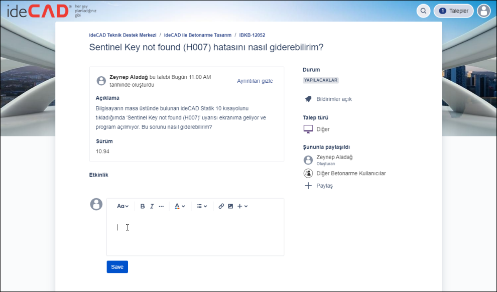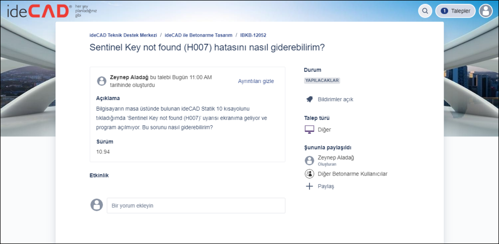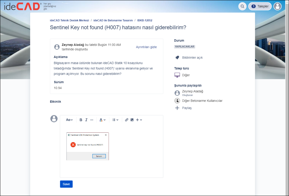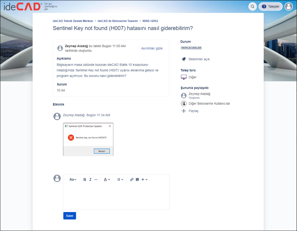 Teknik destek merkezinde daha önce sorduğum soruya nasıl dosya yüklerim?