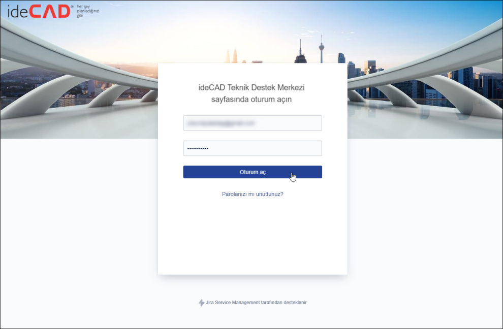 ideCAD teknik destek merkezi sayfası açılacaktır.