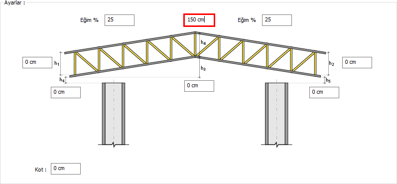 Makas ayarları yükseklik sekmesinde h4 değeri için 150 cm girilmesi ![]() |