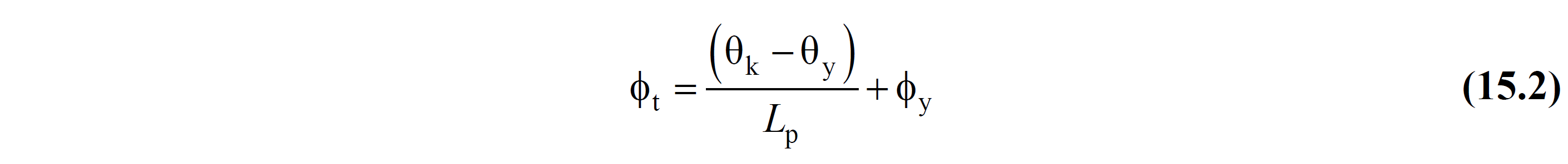 Mevcut binaların Şekildeğiştirmeye Göre Değerlendirme ve Tasarım (ŞGDT) yaklaşımı ile deprem performansının belirlenmesinde doğrusal hesap yöntemi kullanılıyor ise eleman uç kesitinin toplam eğrilik talebi ϕt , Denk.(15.2) ile hesaplanmaktadır.
