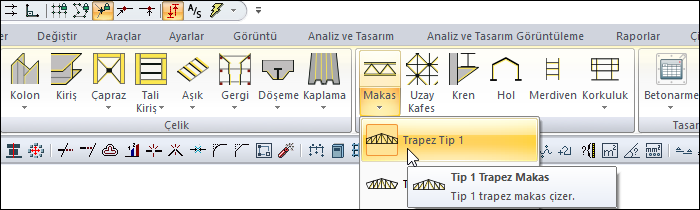 Trapez Tip 1 komutuyla, hazır makas tiplerinden biri olan trapez makas tipi hızlı bir şekilde çizilir. Makas ayarlarından makas yükseklikleri ayarlanır.