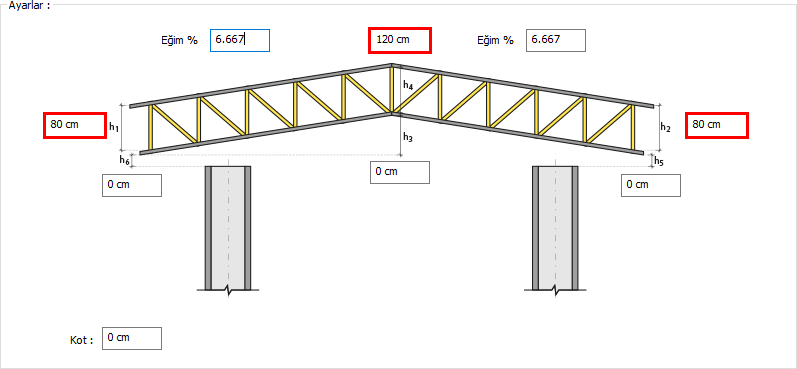 Makas ayarları yükseklik sekmesinde h1 ve h2 için 80 cm, h4 değeri için 120 cm girilmesi. ![]() |