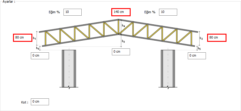 Makas ayarları yükseklik sekmesinde h1 ve h2 için 80 cm, h4 değeri için 140 cm girilmesi. ![]() |