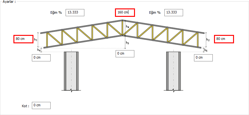 Makas ayarları yükseklik sekmesinde h1 ve h2 değerleri için 80 cm, h4 değeri için 160 cm girilmesi ![]() |
