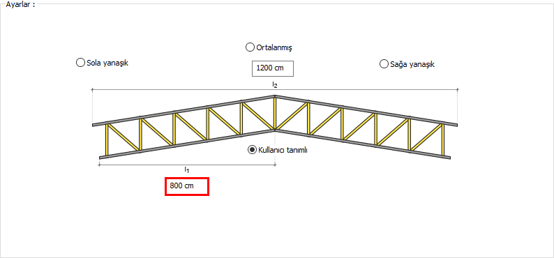 Boyutlar sekmesinde l1 değeri için 800 cm girilmesi ![]() |