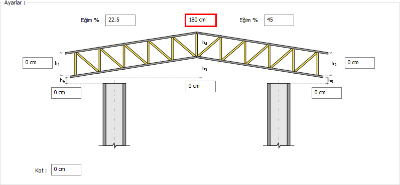 Makas ayarları yükseklik sekmesinde h4 değeri için 180 cm girilmesi ![]() |