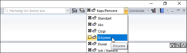 Kapıları perspektif ekranda takip edebilmek için katman listesinden döşeme katmanının işaretini kaldırın.