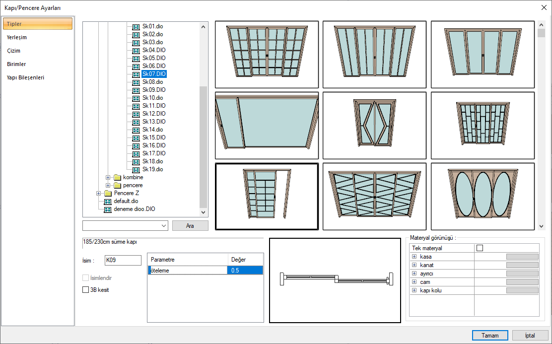 Tipler sekmesinde listeden 1.50/kapılar/surme/Sk07.dio satırını seçin.