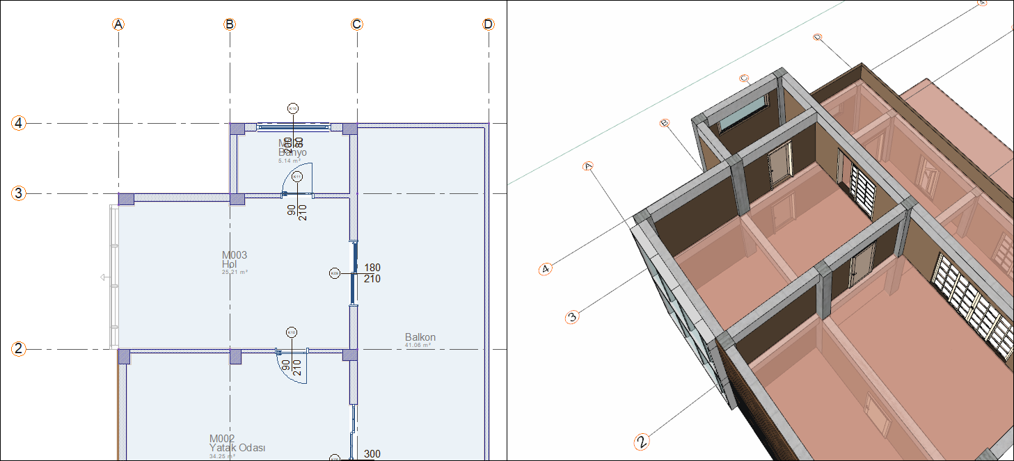 Bu bölümde yapı bilgi modellemesi kapsamında, mimari tasarımın üst kat kapılarını yerleştirin.